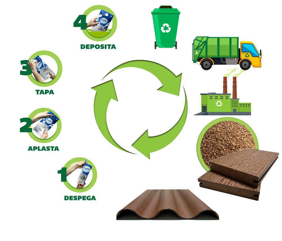 La fabricación de WPC y lamina de polialuminio reduce efectivamente el volumen de desechos en rellenos sanitarios e incineración de residuos.